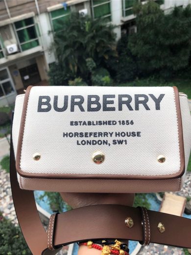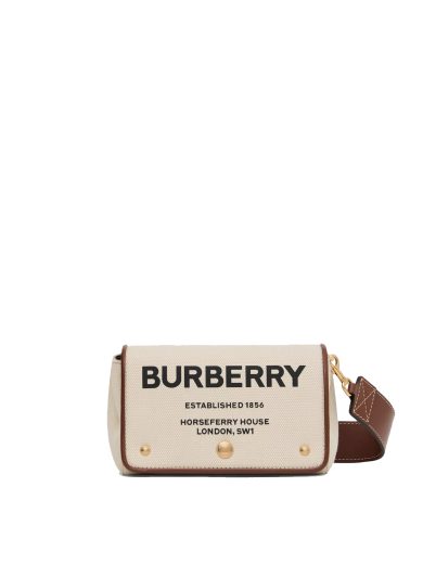BURBERRY SMALL HORSEFERRY PRINT COTTON CANVAS CROSSBODY BAG WHITE/TAN 80266081