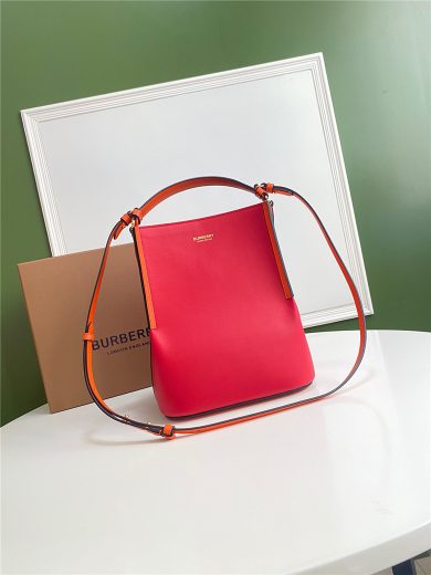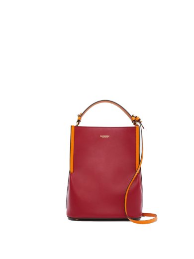 BURBERRY SMALL TWO-TONE LEATHER PEGGY BUCKET BAG RED 80229491