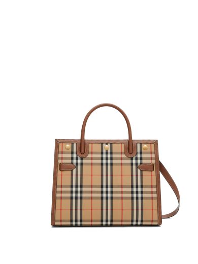 BURBERRY SMALL VINTAGE CHECK TWO-HANDLE TITLE BAGPRICE ARCHIVE BEIGE 80252741