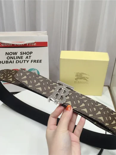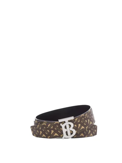 BURBERRY REVERSIBLE MONOGRAM PRINT E-CANVAS AND LEATHER BELT BRIDLE BROWN 80241921