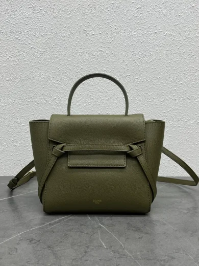 CELINE NANO BELT BAG IN GRAINED CALFSKIN ARMY GREEN 189003ZVA.31GR