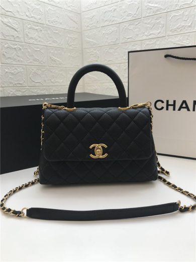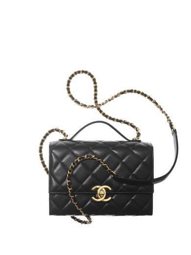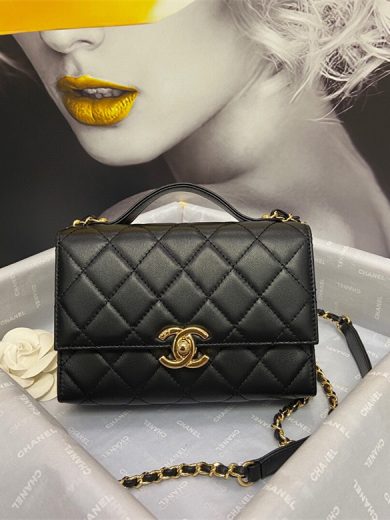 CHANEL MINI FLAP BAG WITH HANDLE LAMBSKIN GOLD METAL BLACK AS2796 B06687 94305