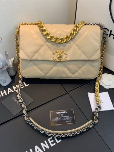 CHANEL 19 FLAP BAG BEIGE AS1161 B01564 N5025