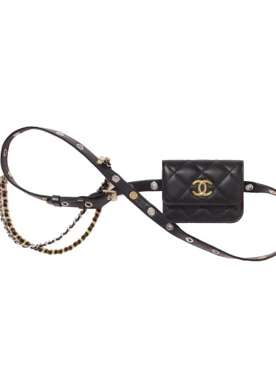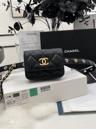 CHANEL BELT BAG GOATSKIN RUTHENIUM-FINISH METAL BLACK AP2549 B07242 94305