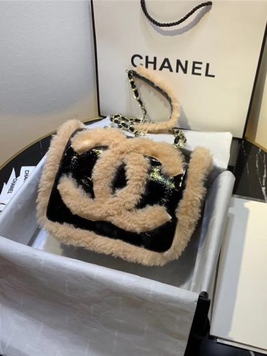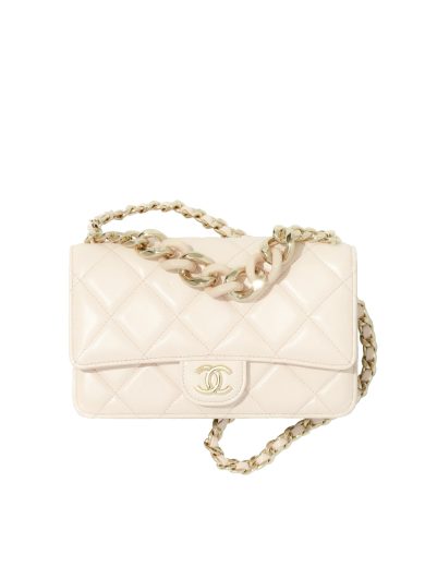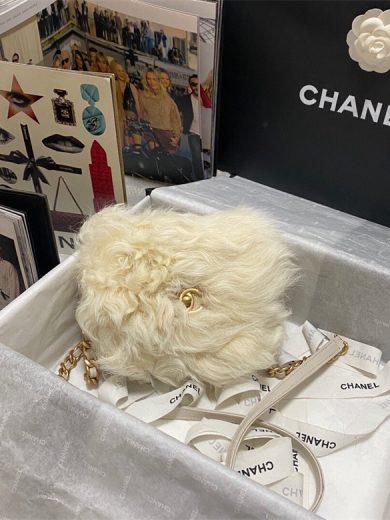CHANEL MINI FLAP BAG SHEARLING LAMBSKIN GOLD-TONE METAL WHITE A67086 Y83792 NG122