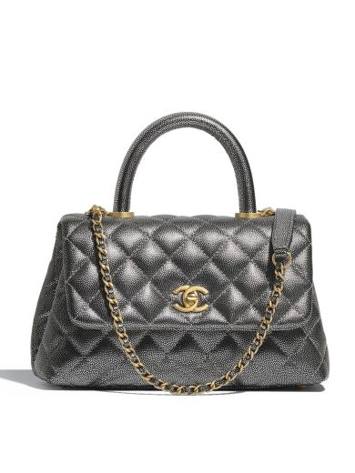 CHANEL METALLIC CAVIAR QUILTED MINI COCO HANDLE FLAP SILVER A92990 B00820 45002