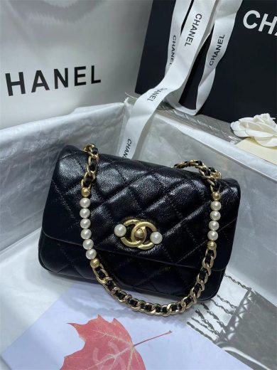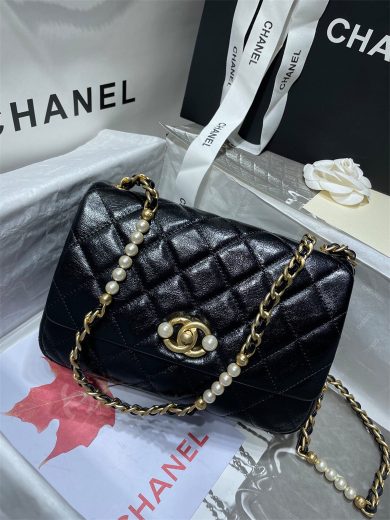 CHANEL SMALL FLAP BAG CALFSKIN BLACK AS3001 B07281 94305
