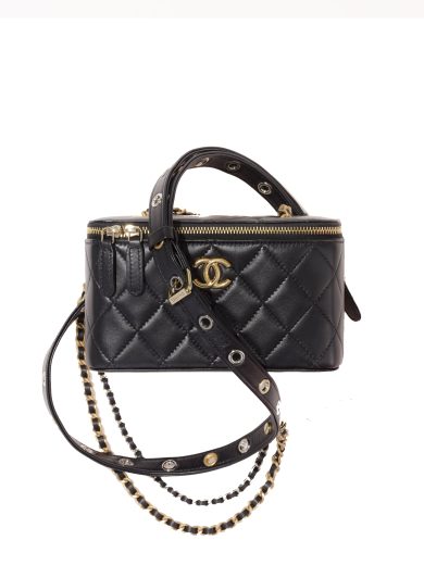 CHANEL VANITY WITH CHAIN GOATSKIN BLACK AP2550 B07242 94305