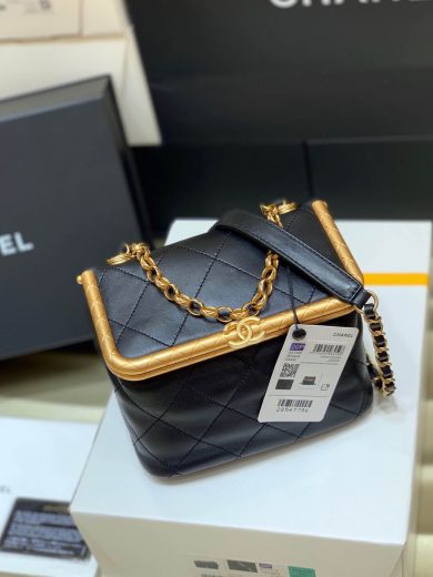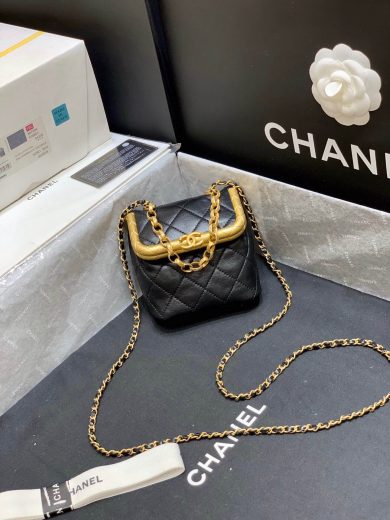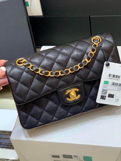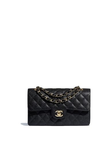 CHANEL SMALL CLASSIC HANDBAG GRAINED CALFSKIN & GOLD-TONE METAL BLACK A01113 Y01864 C3906