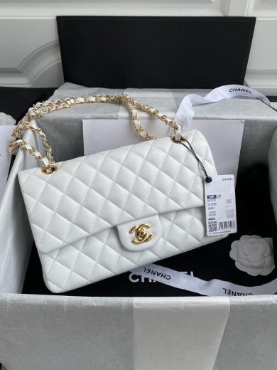 CHANEL CLASSIC HANDBAG LAMBSKIN & GOLD-TONE METAL WHITE A01112 Y04059 10601