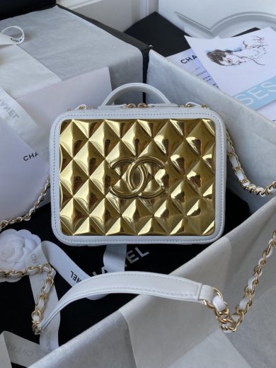 CHANEL VANITY CASE LAMBSKIN & GOLD METAL WHITE AS2900 B06687 10601