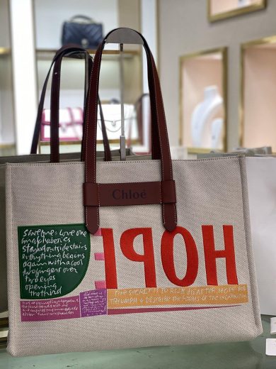CHLOE CORITA KENT LARGE TOTE IN EMBROIDERED ARTWORK & SHINY CALFSKIN CHC21US384E6927S