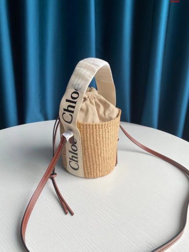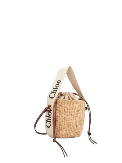 CHLOE SMALL WOODY BASKET IN FAIR-TRADE PAPER WITH THE WOODY RIBBON WHITE CHC21US381E65101