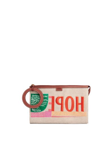 CHLOE CORITA KENT CLUTCH IN EMBROIDERED ARTWORK & SHINY CALFSKIN SEPIA BROWN CHC21UP385E6927S