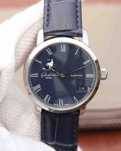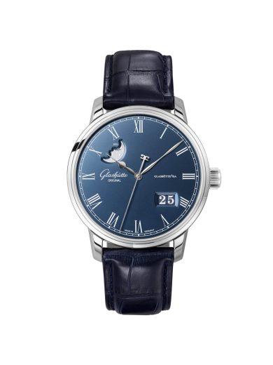 GLASHÜTTE ORIGINAL SENATOR PANORAMA DATE MOONPHASE STAINLESS STEEL BLUE 100-04-05-12-30