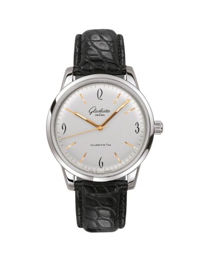 GLASHÜTTE ORIGINAL SIXTIES ROSE GOLD SILVER ALLIGATOR PIN 1-39-52-01-01-04