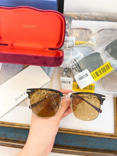 GUCCI BROWN FRAME GREEN LENS SUNGLASSES GG0672S 003