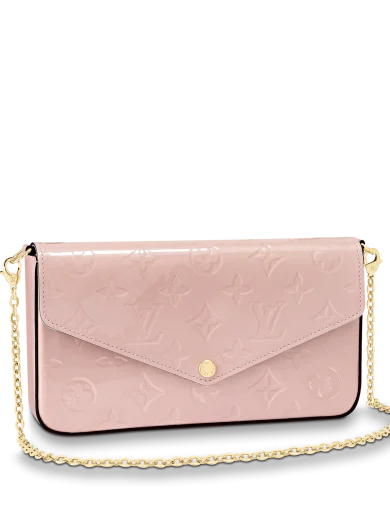 LOUIS VUITTON FÉLICIE POCHETTE BAG MONOGRAM VERNIS CALF LEATHER ROSE PINK M64358
