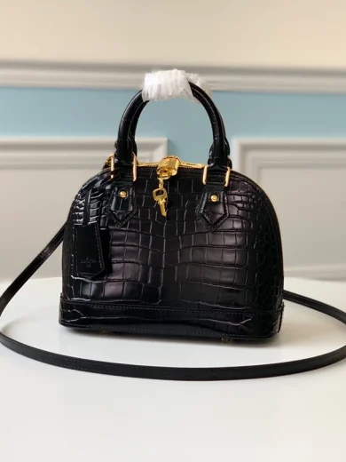 LOUIS VUITTON ALMA BB HANDBAG BRILLIANT ALLIGATOR LEATHER BLACK N90897