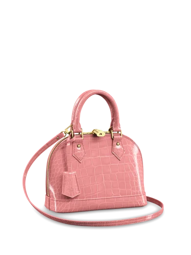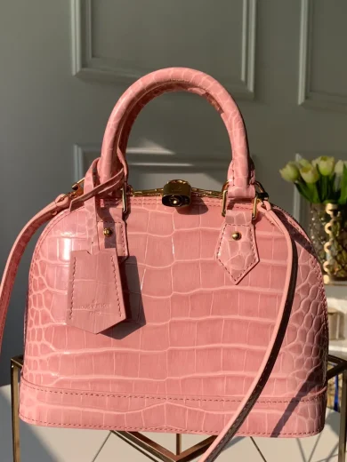 LOUIS VUITTON ALMA BB HANDBAG BRILLIANT ALLIGATOR LEATHER ROSE PINK N94271