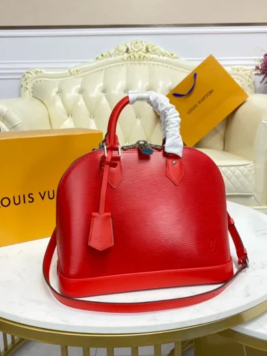 LOUIS VUITTON ALMA BB HANDBAG EPI GRAINED COWHIDE LEATHER COQUELICOT RED M41160