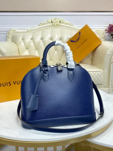 LOUIS VUITTON ALMA BB HANDBAG EPI GRAINED COWHIDE LEATHER INDIGO BLUE M40855