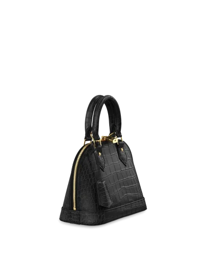 LOUIS VUITTON ALMA BB HANDBAG MATTE ALLIGATOR LEATHER MATTE BLACK N95558