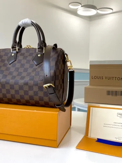 LOUIS VUITTON SPEEDY BANDOULIÈRE 25 HANDBAG DAMIER EBENE COATED CANVAS N41368