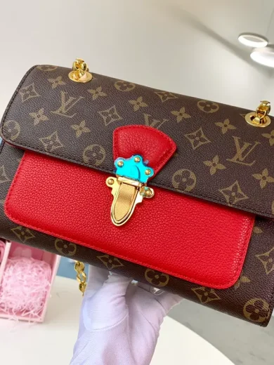 LOUIS VUITTON VICTOIRE CHAIN BAG MONOGRAM COATED CANVAS CERISE RED M41731