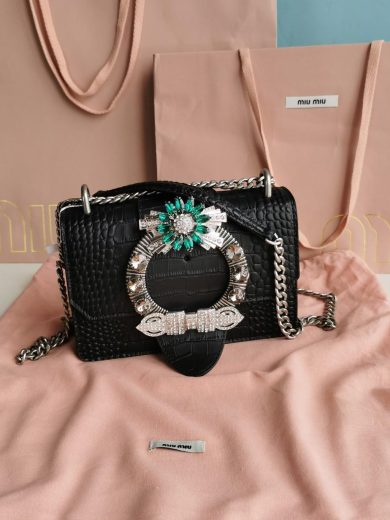 MIUMIU MIU LADY CROCO-PRINT LEATHER SHOULDER BAG BLACK 5BD084_2B8G_F0002_V_CJO