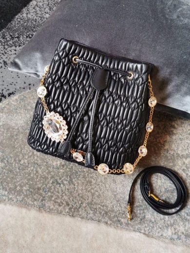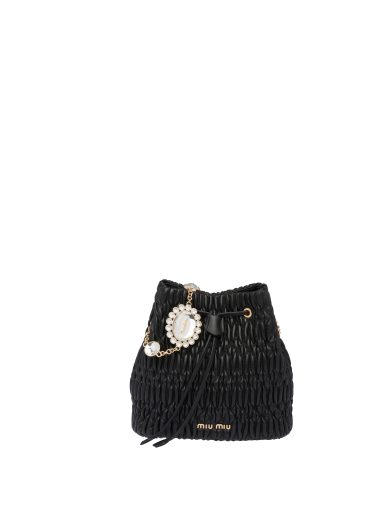 MIUMIU MIU CRYSTAL CLOQUÉ NAPPA LEATHER BUCKET BAG BLACK 5BE050_FVJ_F0632_V_OOO