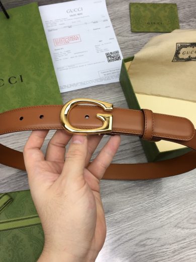 GUCCI THIN BELT WITH G BUCKLE BROWN 655566 BGH0G 2535