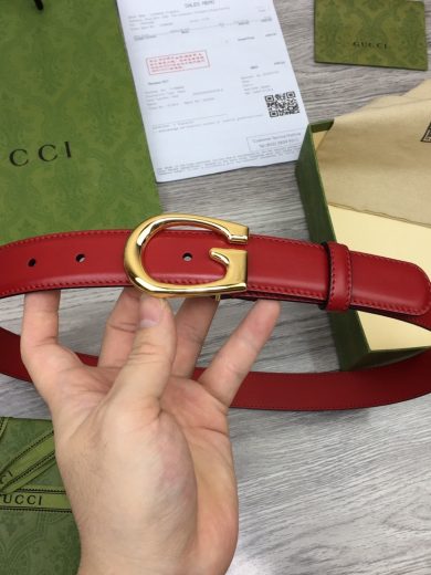 GUCCI THIN BELT WITH G BUCKLE RED 655566 BGH0G 6638