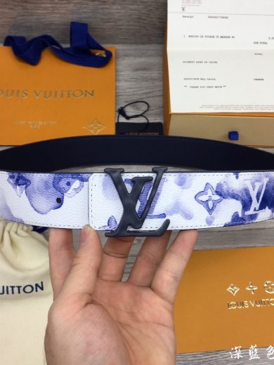 LOUIS VUITTON LV SHAPE REVERSIBLE BELT 40 MM LIGHT BLUE M0358T