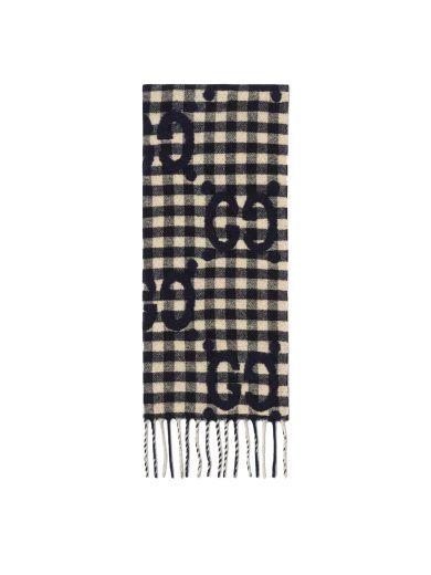 GUCCI GG JACQUARD WOOL SCARF DARK BLUE AND IVORY 644365 4G718 4178