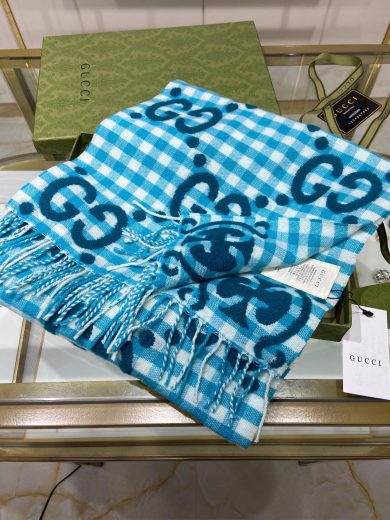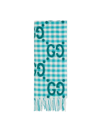 GUCCI GG JACQUARD WOOL SCARF TURQUOISE AND IVORY 644365 3GA69 4678