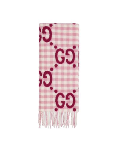 GUCCI GG JACQUARD WOOL SCARFPINK AND IVORY 644365 3GA69 5878