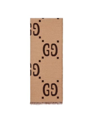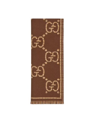 GUCCI GG JACQUARD WOOL SILK SCARF BROWN BEIGE 495592 4G350 2179