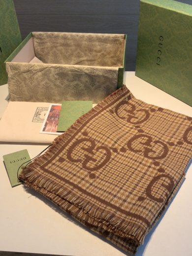 GUCCI GG WOOL SCARF BROWN AND BEIGE 660025 4G386 2579