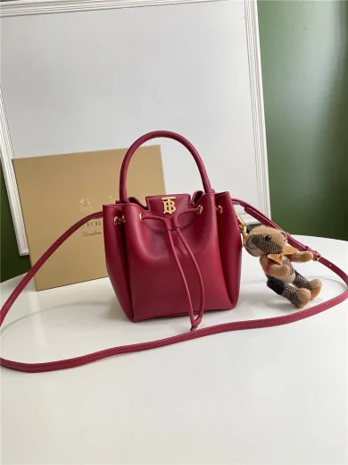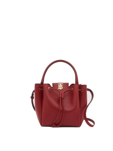 BURBERRY MONOGRAM MOTIF LEATHER BUCKET BAG DARK CARMINE 80265951