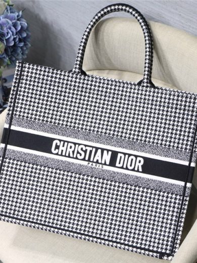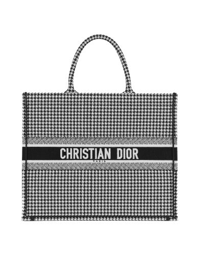 DIOR BOOK TOTE Black and White Houndstooth Embroidery M1286ZRPI_M081