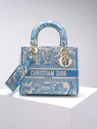 DIOR MEDIUM LADY D-LITE BAG CORNFLOWER BLUE TOILE DE JOUY EMBROIDERY M0565OTDT_M917