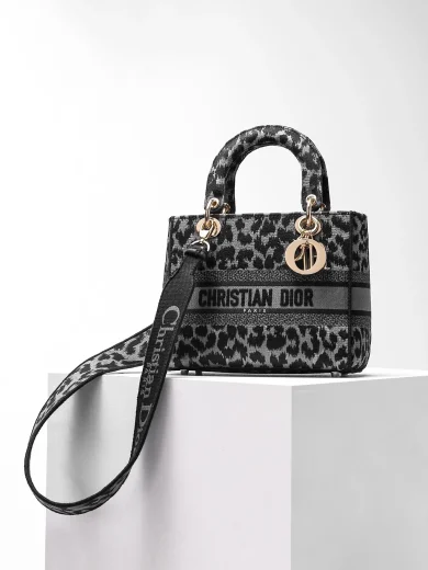 DIOR MEDIUM LADY D-LITE BAG GRAY MIZZA EMBROIDERY M0565ORHM_M842