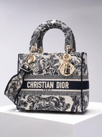 DIOR MEDIUM LADY D-LITE BAG NAVY BLUE TOILE DE JOUY STRIPES EMBROIDERY M0565ORLP_M928