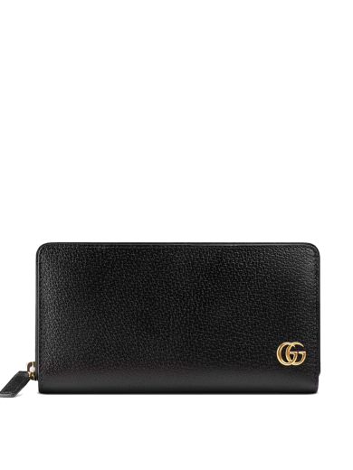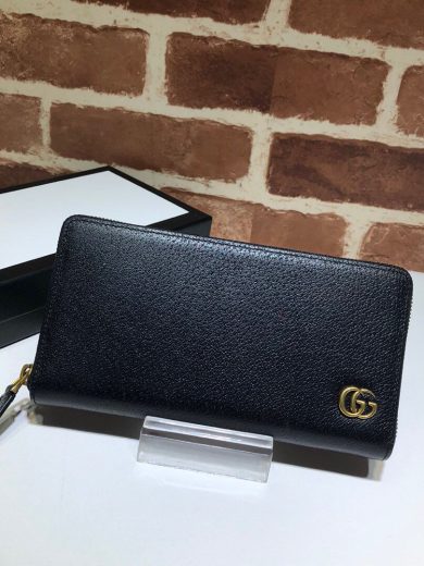 GUCCI GG MARMONT LEATHER ZIP AROUND WALLET BLACK GOLD LOGO 428736 DJ20T 1000