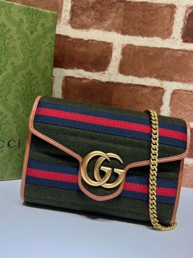 GUCCI GG MARMONT MINI BAG WITH WEB DARK GREEN 474575 HS3MT 3382