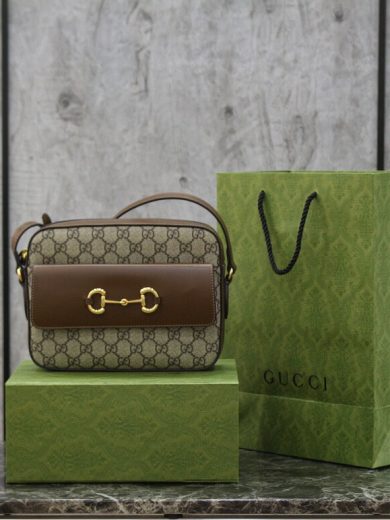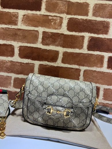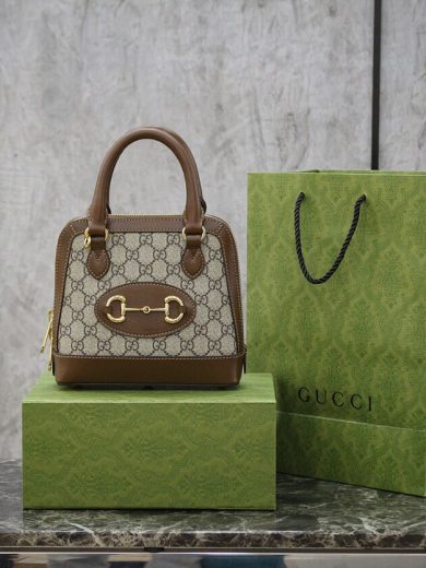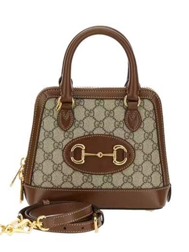 GUCCI HORSEBIT 1955 MINI TOP HANDLE BAG GG SUPREME AND BROWN LEATHER 640716 92TCG 8563