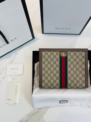 GUCCI OPHIDIA POUCH BEIGE EBONY GG SUPREME CANVAS 625549 96IWG 8745