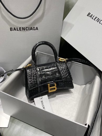 BALENCIAGA WOMEN'S HOURGLASS XS HANDBAG IN BLACK 5928331LRGM1000