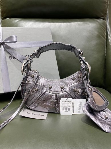 BALENCIAGA WOMEN'S LE CAGOLE XS SHOULDER BAG IN SILVER 6713090GT3Y8103